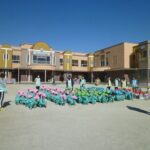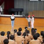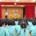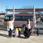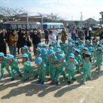 園庭に大きく広がって先生の声に合わせながら跳ぶ練習をしたり、