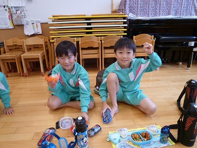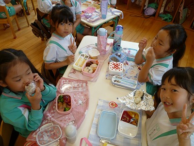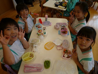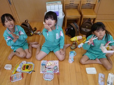 おいもほりは別の日になってしまいますが、お部屋でお弁当をみんなで一緒に食べました。