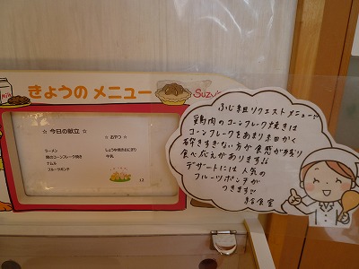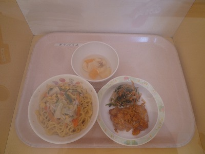 ・ラーメン ・鶏のコーンフレーク焼き ・ナムル ・フルーツポンチ