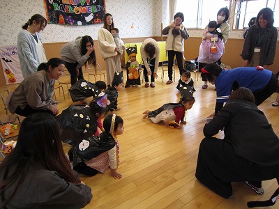 かばんを持って園内を探検!!仮装した先生たちにプレゼントをもらって楽しかったですね😊