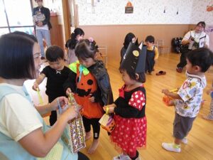 ハロウィン飾りのお部屋での読み聞かせも興味津々だった子どもたち。