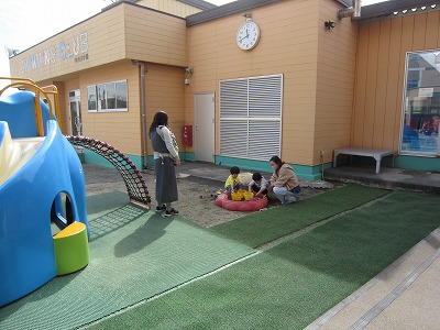 お天気もよく外で砂遊びやすべり台、シャボン玉をしてたくさん遊べました。