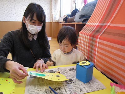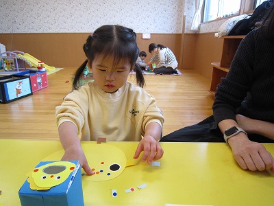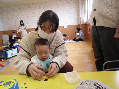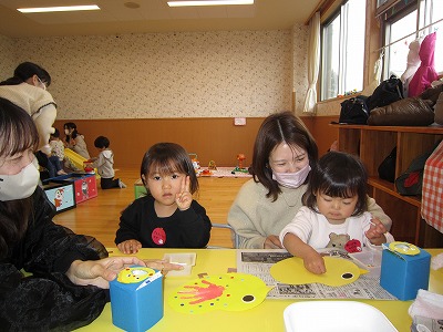 ひよこの手形製作では自分の手の色が変わっていく様子に興味津々で楽しんでいました。
